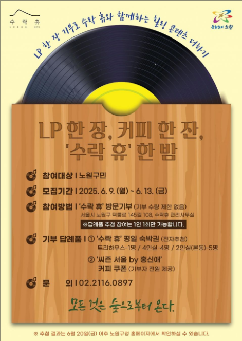 수락휴는 특별한 예약 기회를 제공하는 LP(포인트) 기부 이벤트를 운영하고 있습니다. LP는 서울시 공식 플랫폼에서 적립할 수 있는 포인트로, 이를 기부하면 예약 우선권을 얻을 수 있습니다.
