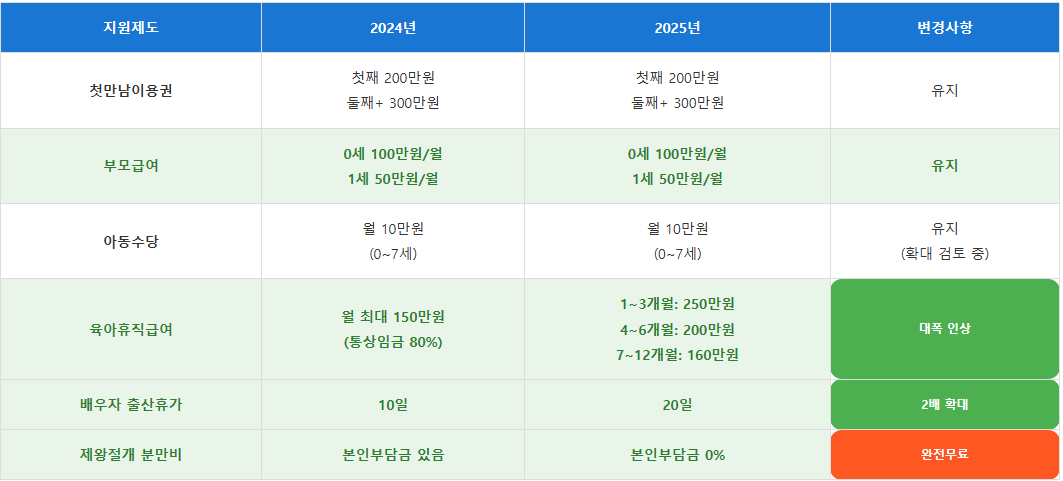 2025년은 정부의 저출산 대응 정책이 한층 강화되는 해입니다. 인구 국가비상사태 선언과 함께 출산 및 양육가정에 대한 지원이 대폭 확대되었습니다.